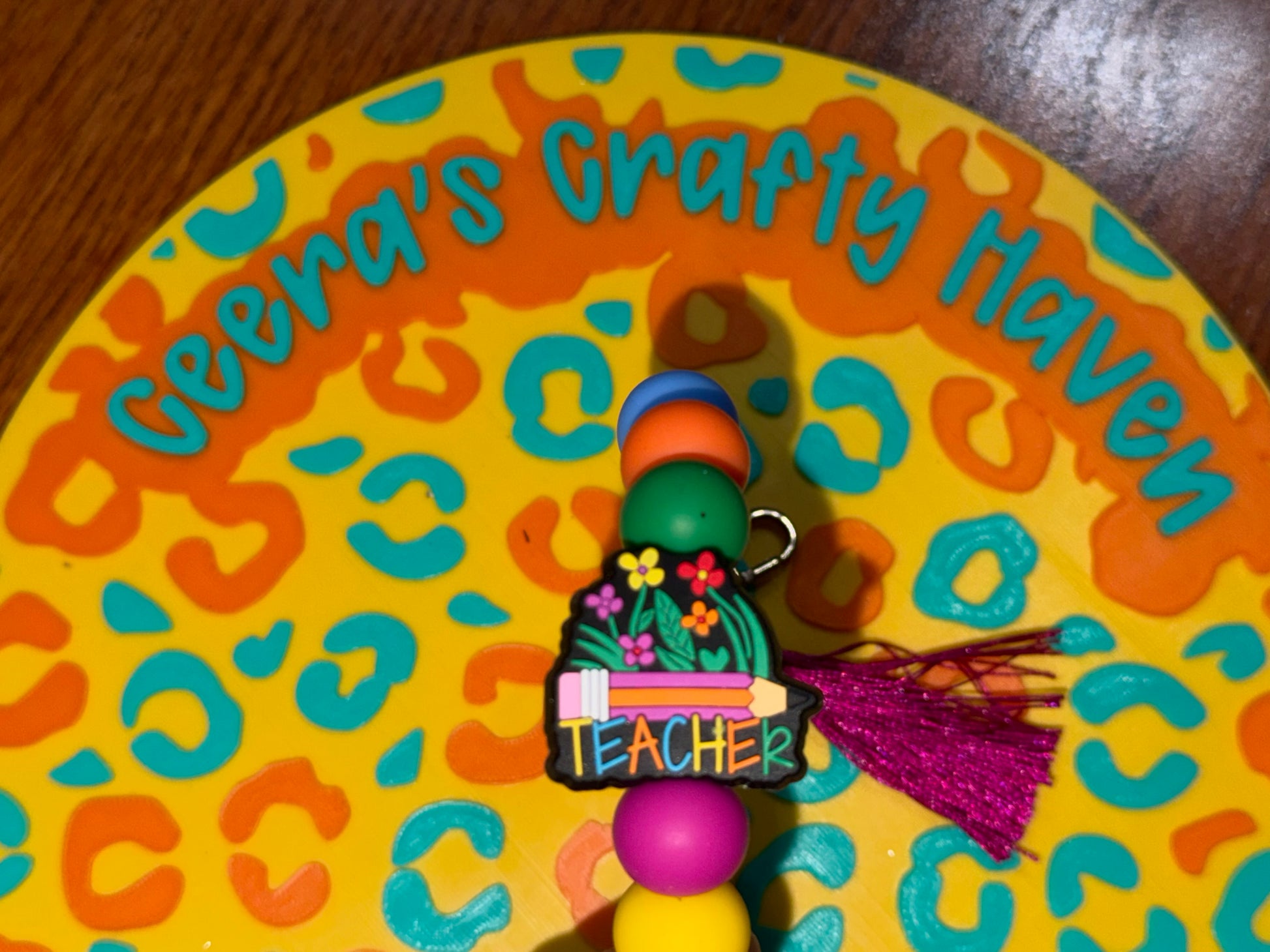 Wristlet with a focal that says "Teacher"